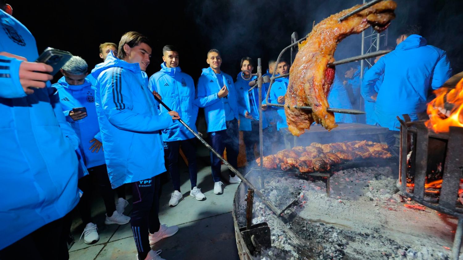 La cuenta oficial de la Selección (@Argentina) compartió las fotos de los pibes durante el asado pero el momento destacado de la noche fue grabado por el dirigente Javier Méndez Cartier, presidente de Excursionistas e integrante de la comitiva que encabeza Claudio Tapia, que subió el video a sus redes del malambo que bailó el goleador Alejo Veliz frente a todos los presentes.