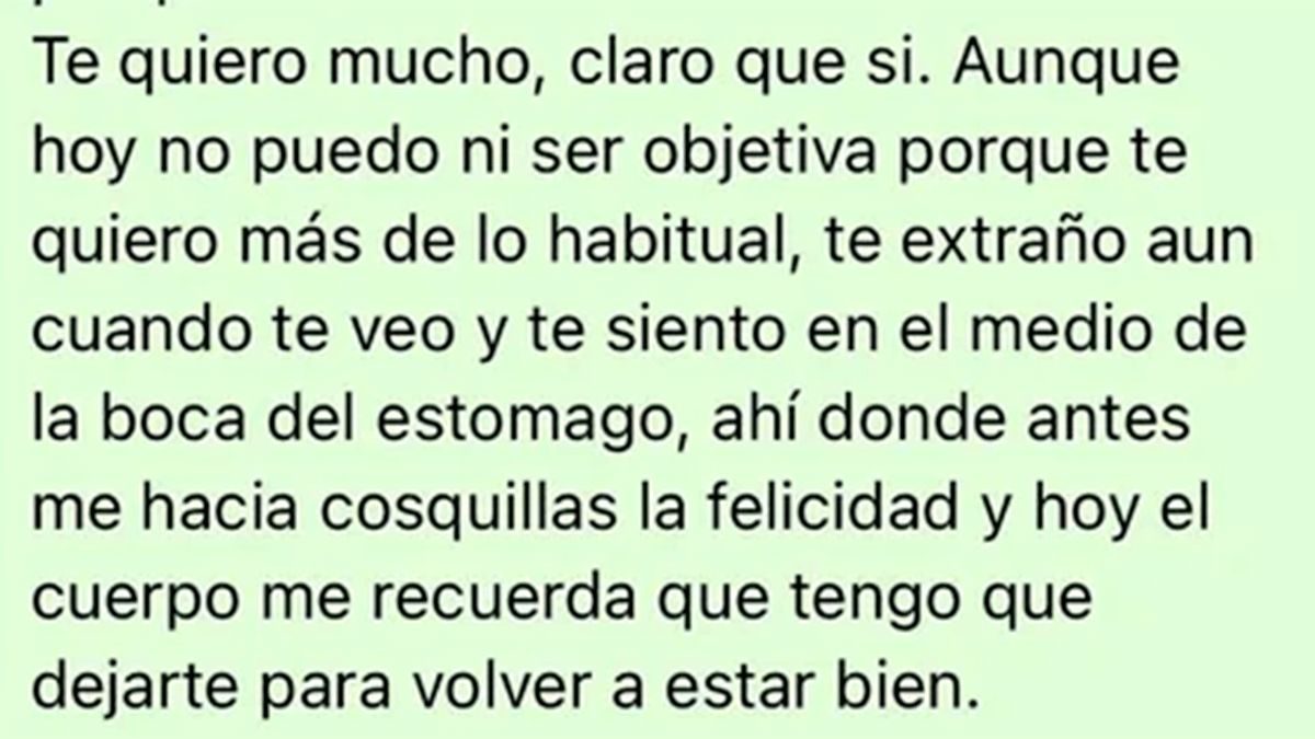 En épocas en donde se comparte y se cuenta casi todo en las redes sociales, una joven mostró el chat que mantuvo con su ex, en donde le explicaba que iba a dejarlo, y su respuesta se volvió viral. "Resulta que escribí un texto larguísimo para, de manera políticamente correcta, explicarle a #él que lo estaba dejando. Después de pensarlo y repensarlo, me armé de valor y se lo mandé. Esta fue su respuesta", escribió @muyagustina en Twitter junto con la captura de la conversación. En el chat se observa el larguísimo texto que le envió la joven pasadas las 8.30 de la mañana. "Buenasss. ¿Una poesía?", respondió el joven, como exponiendo que no había leído nada. El chat y la frase del chico dejado no tardó en volverse viral. La publicación original tiene miles de citas y respuestas con todo tipo de reacciones.