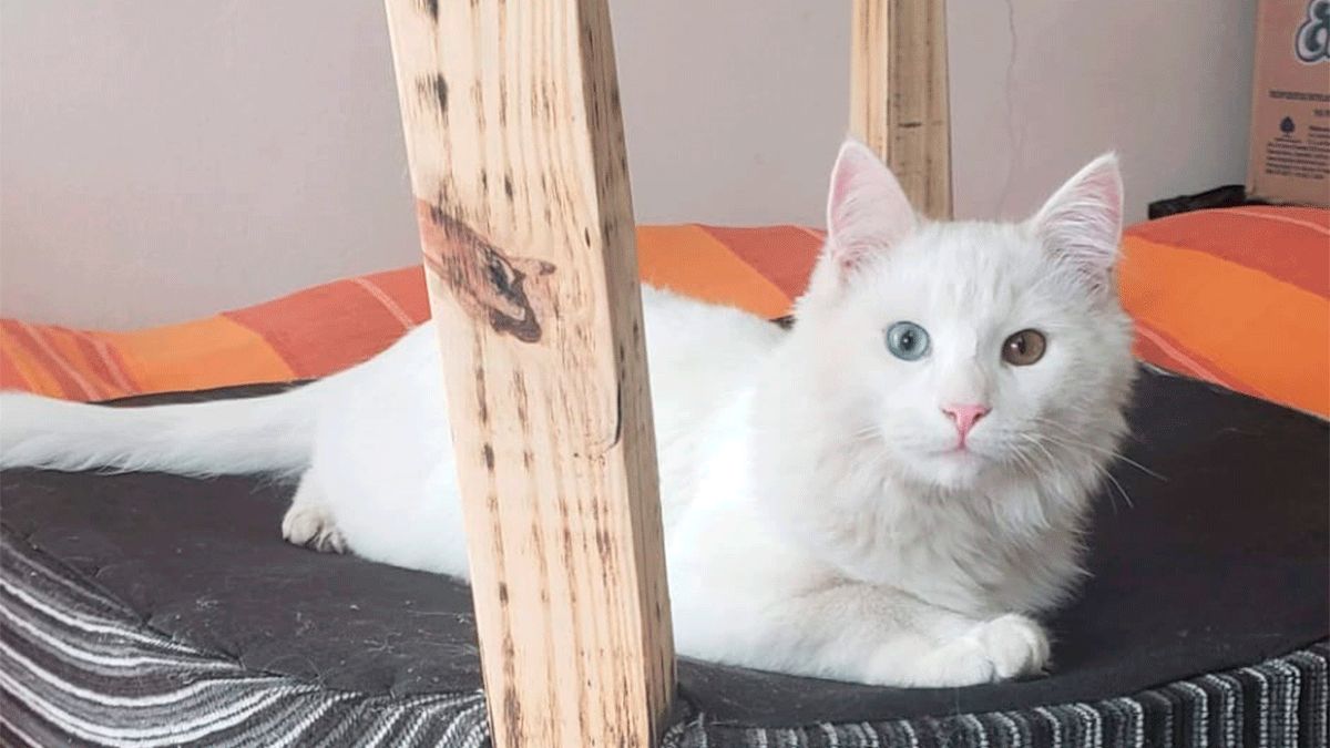 Pedro es un lindo gatito de color blanco, con heterocromia y castrado y se perdió en el barrio Lomas del Golf y Aeropuerto.
