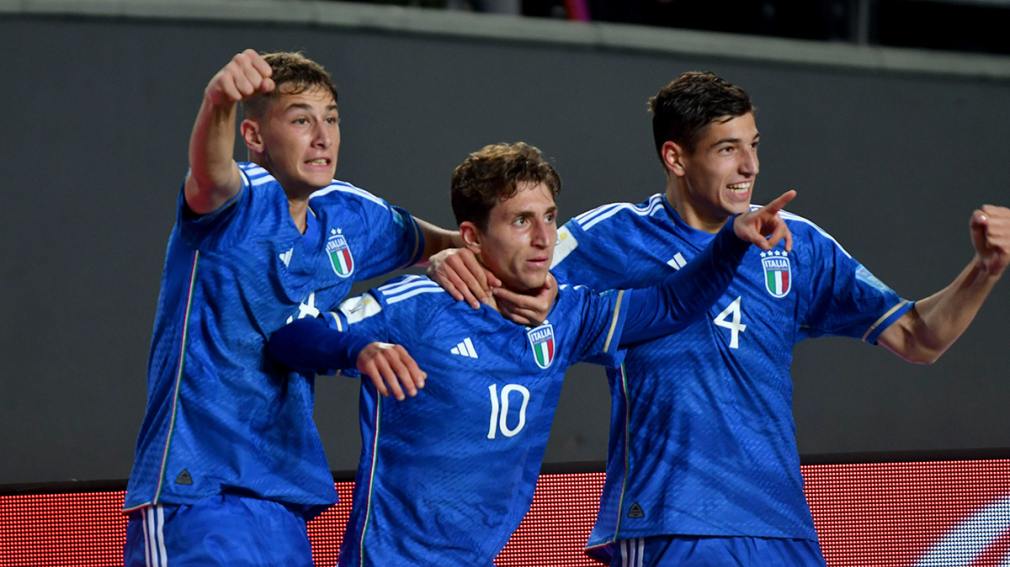 Ambos seleccionados se repartieron el protagonismo en el primer tiempo en el “Diego Maradona” y no se sacaron ventaja. Empezó mejor el equipo azurro y así se puso en ventaja a los 8 minutos con una buena jugada que terminó en centro desde la izquierda de Turicchia y entró por el medio en posición de 9 Baldanzi para definir con un toque de primera a la izquierda del arquero que no llegó a desviar.