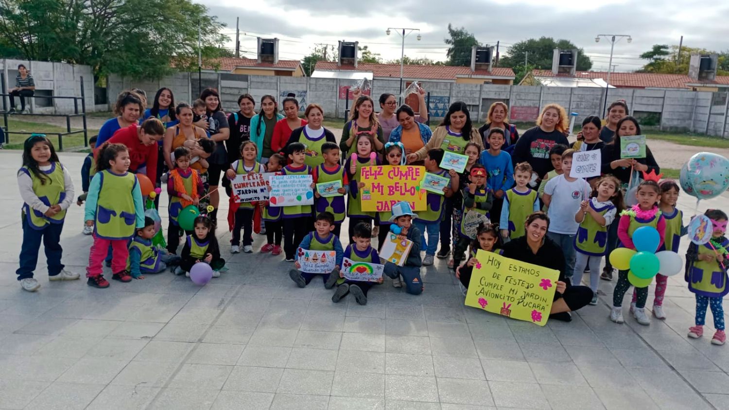 Es que el jardín de infantes N 892 "Avioncito Pucara " festejó sus 7 años de vida institucional con una caminata por las calles del barrio.