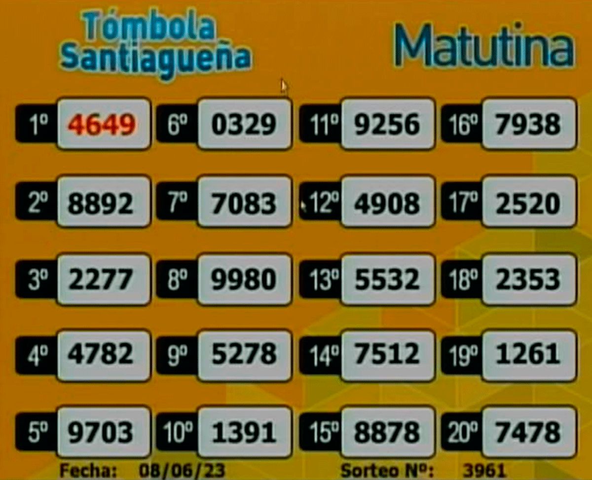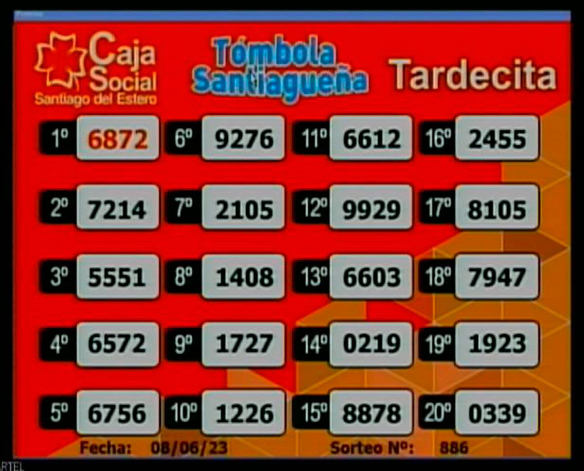 Este jueves 8 de Junio del 2023, como todos los días, se llevó a cabo un nuevo sorteo de la Tómbola Santiagueña.