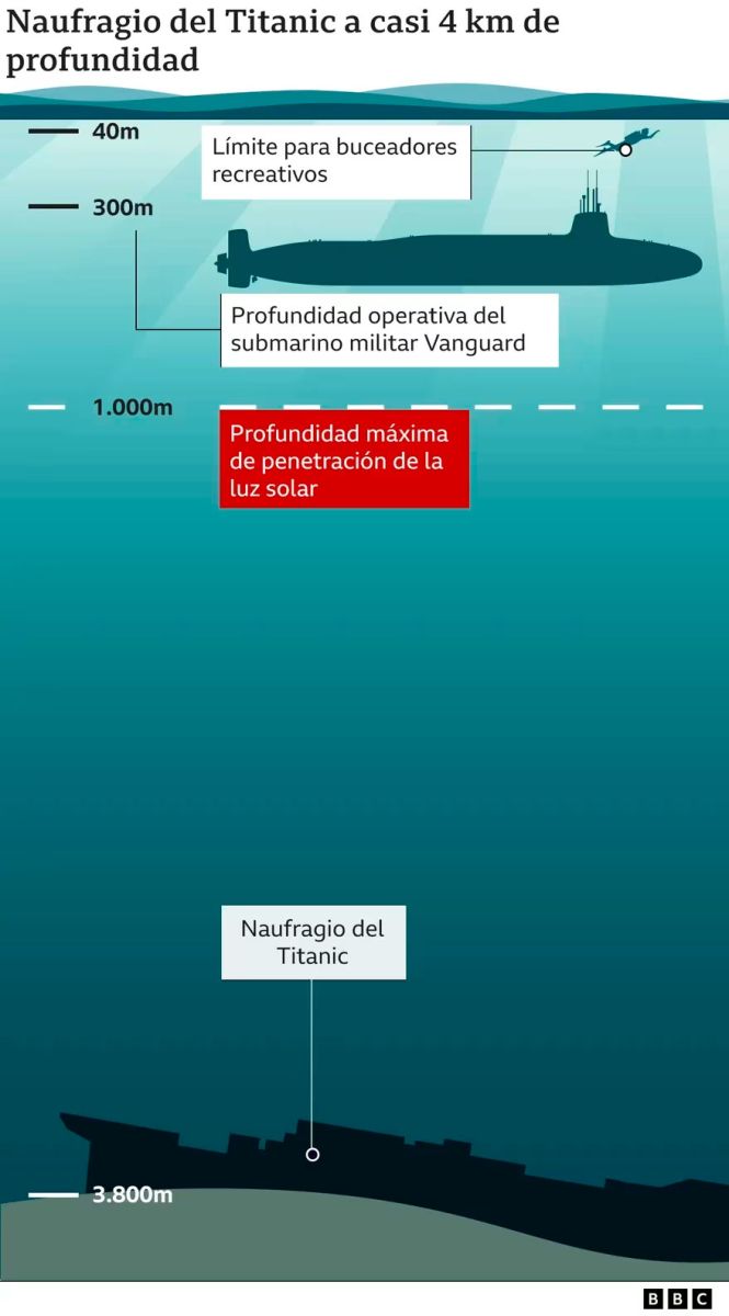 El sumergible, fabricado con fibra de carbono y titanio, es “del tamaño de una furgoneta grande, y está pintado de blanco. Tratar de encontrar algo así desde el aire, particularmente si se han quedado sin energía y no puedan enviar señales, será un verdadero desafío”, sostiene.
