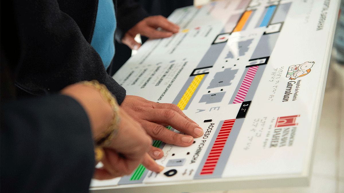 El Hospital Garrahan inauguró el primer mapa en un centro pediátrico de la Argentina con texturas y sistema braille para personas con ceguera o disminución visual, una iniciativa inédita que "facilita la ubicación espacial" en el marco de políticas de inclusión articuladas con la Agencia Nacional de Discapacidad (Andis), se informó hoy oficialmente.
