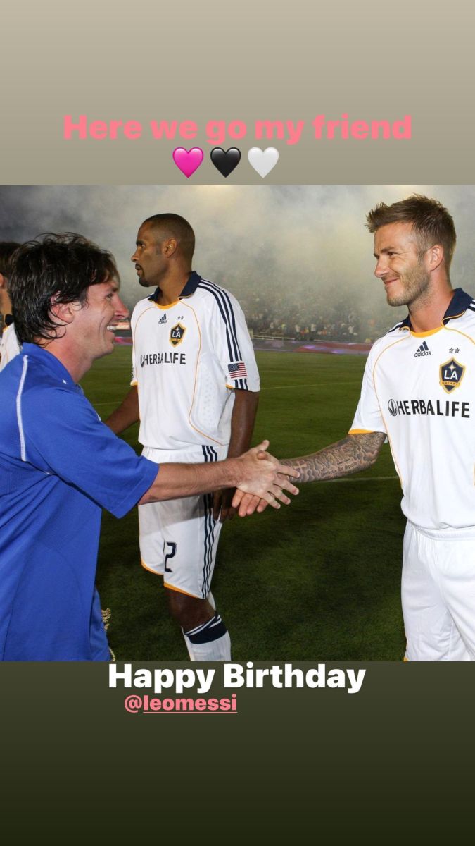 Otros que saludaron a Messi fueron el inglés David Beckham, uno de los dueños de Inter Miami: "Feliz cumpleaños, mi amigo. Un año especial por delante", con una foto del clásico entre Barcelona y Real Madrid con ambos de cada lado. "Acá vamos, mi amigo. Feliz cumpleaños, Leo", agregó en otra historia de Instagram.