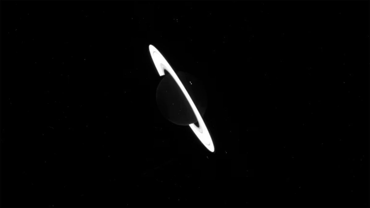 Se trata de fotografías que aún no están coloreadas, y que brindan una imagen en blanco y negro del planeta de los anillos de una forma muy particular, como haciendo sombras en una sábana blanca. Algunas de las instantáneas muestran simplemente una mancha blanca brillante con puntas, como si una linterna halógena brillara sobre una tela reflectante.