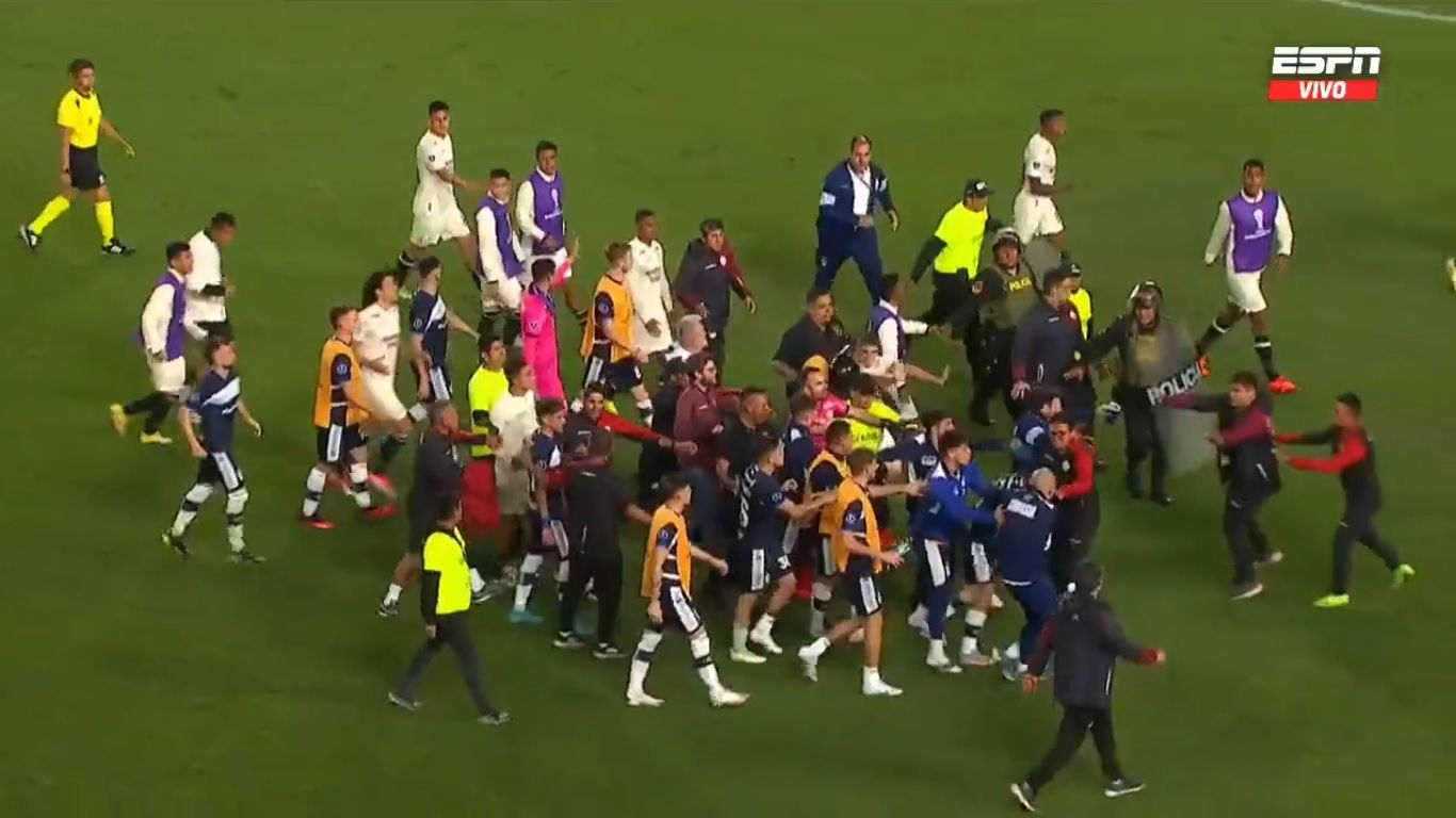 La situación estaba a nada de finalizar en una pelea y sucedió; a lo largo de todo el terreno de juego, futbolistas y allegados terminaron a las trompadas y patadas protagonizando un verdadero bochorno en Perú.