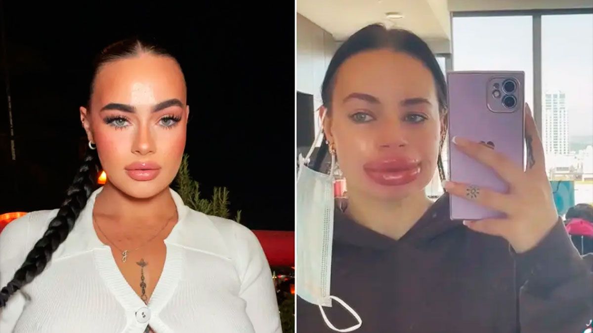 En esta oportunidad, la joven decidió poner en práctica un llamativo método para aumentar el volumen de los labios, algo que según ella se puso de moda en el último tiempo, pero el post operatorio la dejó con el rostro desfigurado e irreconocible tras haber recurrido al ácido hialurónico.