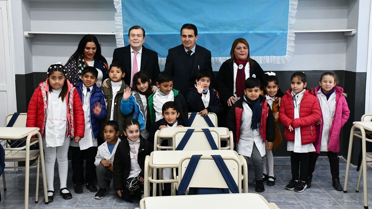 Ante un patio colmado de alumnos y vecinos, el gobernador ratificó su determinación de seguir invirtiendo para consolidar el crecimiento de la provincia, con la educación como parte fundamental que permita formar a las nuevas generaciones con las capacidades necesarias para el desarrollo, acompañado por obras y avances tecnológicos que permitan hacer frente a los nuevos desafíos.