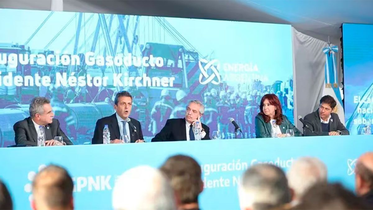 En esa oportunidad la coalición oficialista buscó mostrar la unidad del espacio con sus tres principales referentes en el escenario y con los gobernadores de todos los distritos por los que pasa la obra de 573 kilómetros de extensión.