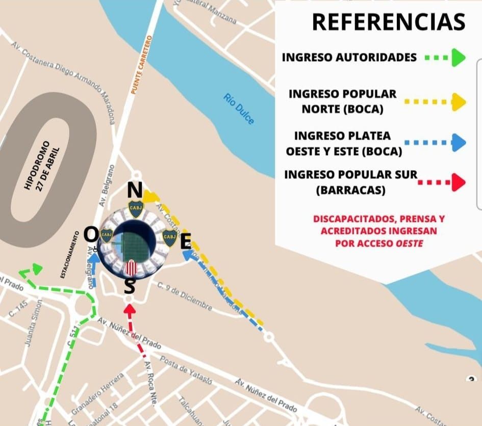 Desde la Policía de la Provincia, informaron este miércoles sobre los puntos de accesos para poder ingresar al Estadio Único “Madre de Ciudades” para presenciar el encuentro futbolístico entre Boca Juniors y Barracas Central por los 16avos de final de la Copa Argentina. Las puertas del estadio se abrirán a las 16.