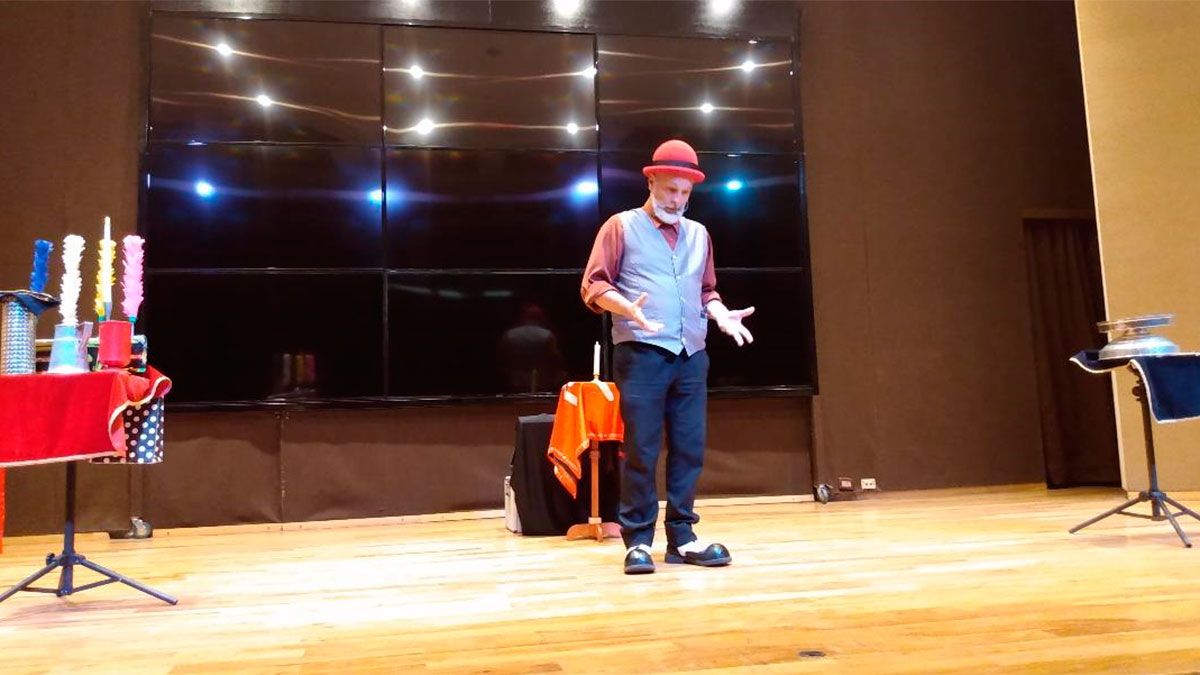 Un espectáculo sumamente sorprendente en el que la magia y el clown se mezclan con la participación del público, generando situaciones que asombran y divierten tanto a niños como a grandes.