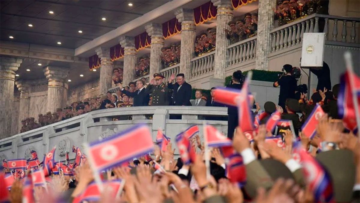 Kim presidió el acto celebrado el jueves con el ministro de Defensa ruso Sergei Shoigú situado a su derecha y Li Hongzhong, miembro del Politburó del Partido Comunista de China (PCCh), a su izquierda en el palco instalado en la céntrica plaza Kim Il-sung de Pionyang frente al Gran Palacio de Estudios del Pueblo.