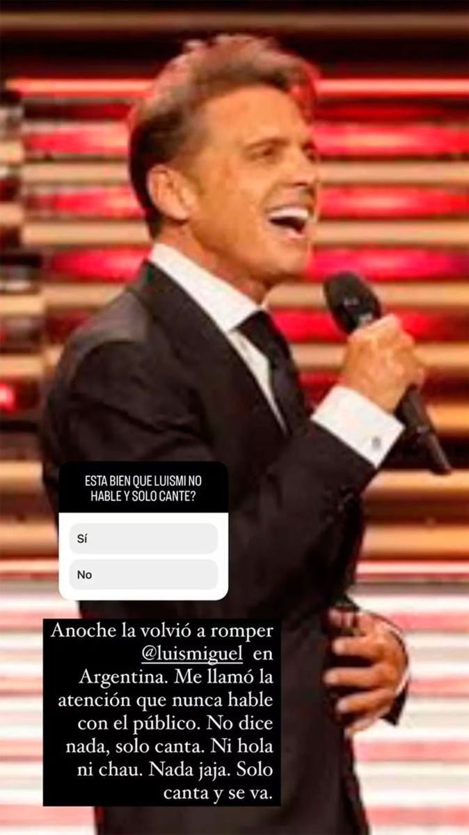 La megaestrella se encuentra en nuestro país en el marco de su gira por Latinoamérica y agotó las entradas del Movistar Arena en todas sus funciones. Sin embargo, una teoría genera duda en todo el país: ¿Es él o un doble? Ante esto, Marcelo Tinelli instaló la duda. Luis Ventura aseguró que suele mandar dobles a distintos shows y se atrevió a decir que quien vino no es Luis Miguel, sino un impostor enviado por él. Pero es algo que resulta raro porque no existe tal motivo para que suceda esto. Otra hipótesis es que falleció hace años y por eso contrataron un doble, con el fin de continuar comercializando el personaje. Por su parte, el conductor televisivo decidió opinar y agiganta las teorías con una historia publicada en su Instagram donde se ve una foto del astro musical: “Anoche la volvió a romper en Argentina. Me llamó la atención que nunca hable con el público. No dice nada, solo canta. Ni hola, ni chau. Nada jaja. Solo canta y se va”, expresó y sorprendió a todos sus seguidores. De esta manera, el dueño de la productora LaFlia se sumó a los rumores que indican la rareza de Luis Miguel en su visita a la Argentina e, incluso, a quienes ponen en duda su identidad.