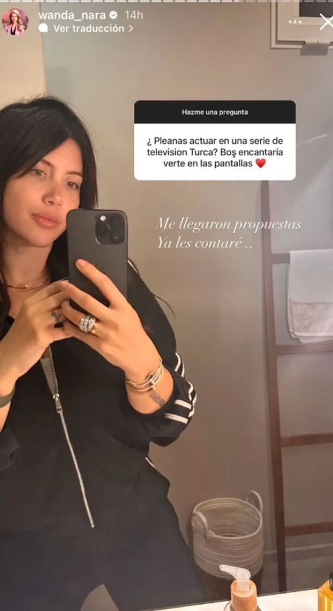 Wanda Nara sigue en Turquía con Mauro Icardi y sus hijos en Estambul, cumpliendo al pie de la letra el tratamiento que le recomendaron los médicos. Ayer la empresaria decidió hablar con sus seguidores a través de Instagram y sorprendió con una de las respuestas. “¿Planeás actuar en una serie de TV turca? Nos encantaría verte en las pantallas”, le dijeron. “Me llegaron propuestas, ya les contaré...”, respondió Wanda, enigmática. Acto seguido, una persona le comentó: “Te extrañamos en la TV”. “Vuelvo”, sentenció Nara, contundente, anunciando su pronta vuelta a la pantalla. ¡Con todo!.