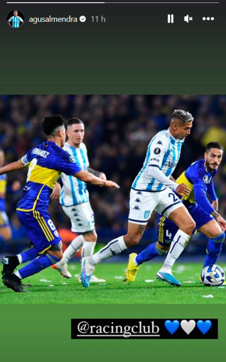 Después del empate sin goles, donde disputó los últimos 15 minutos tras reemplazar a Nicolás Oroz, el jugador de 23 años posteó una foto del encuentro de anoche y agregó tres corazones con los colores del conjunto de Avellaneda además de haber etiquetado la cuenta oficial del club.