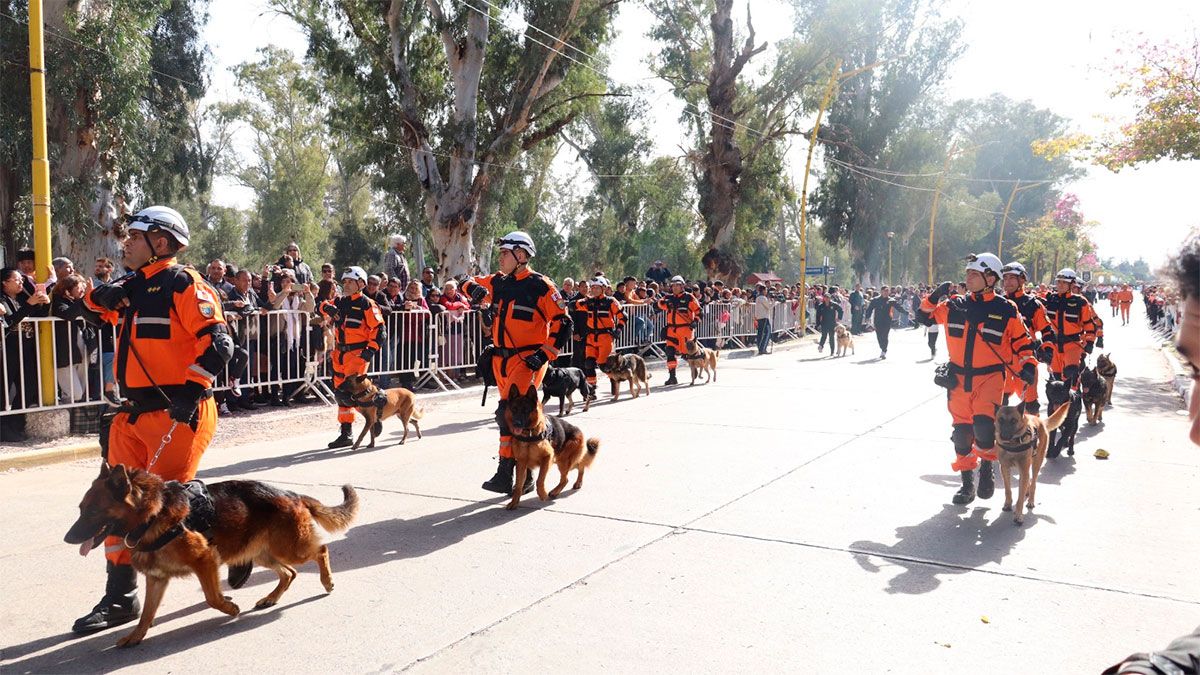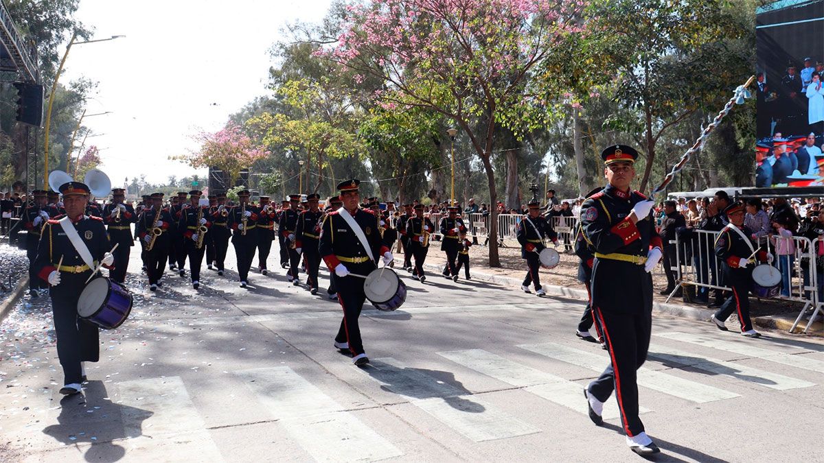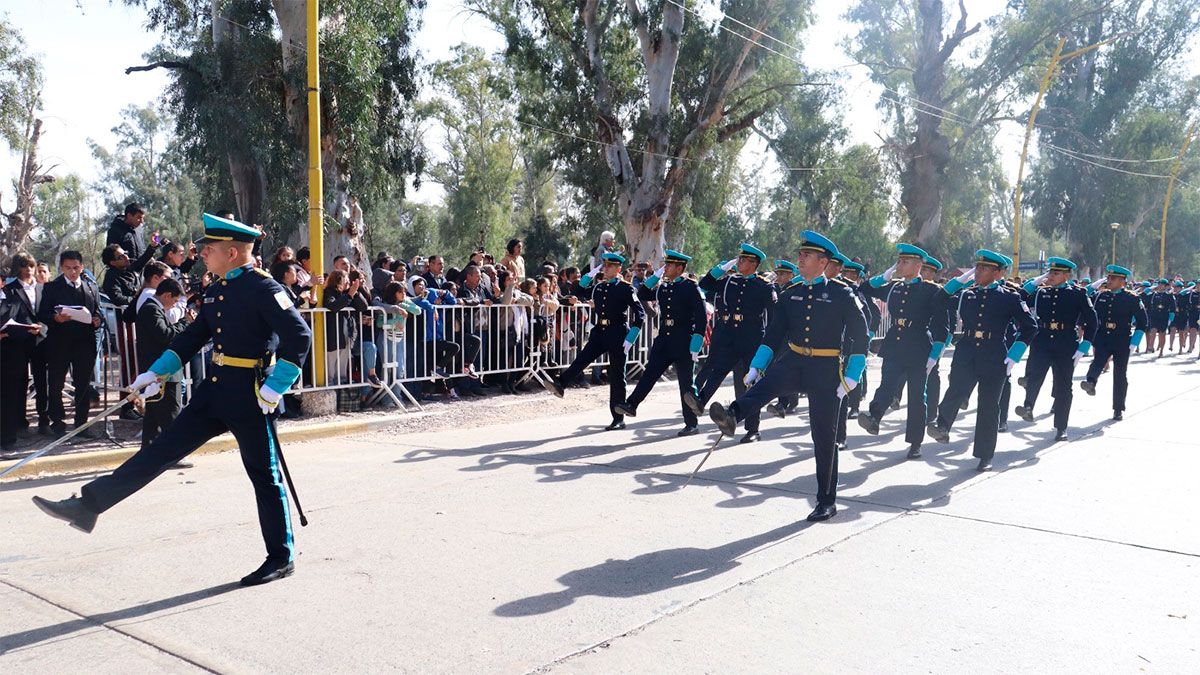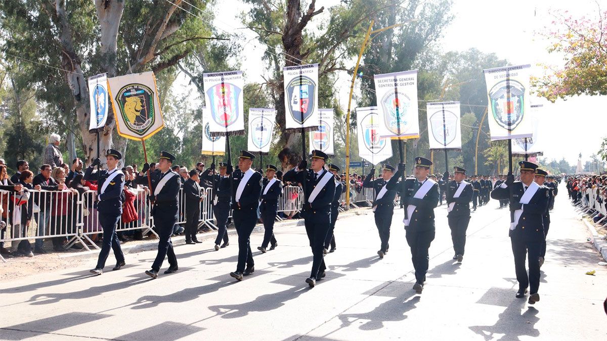 Invadidos de aplausos tras las palabras dirigidas a los presentes, se ordenó inicio del dispositivo de desfile, en donde participaron instituciones educativas policiales, áreas de cuerpo, reservas permanentes y especiales, direcciones generales, departamento de seguridad ciudadana, las comisarías, cuerpo de policía montada, las unidades móviles-Ciclísticas, que recorren a diario las calles santiagueñas, promoviendo la seguridad y reguardando el orden. Cerrando el desfile las unidades móviles de la División bomberos, unidad escalera y unidad autobomba, a son de la banda de música.