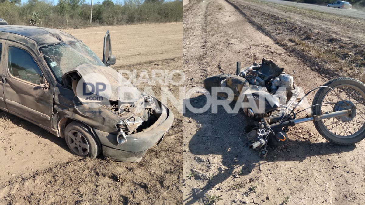 Allí una motocicleta Corven de 150 c.c, por razones a establecer colisionó contra una camioneta Citroen Berlingo y el motociclista terminó con graves heridas, luego de volcar tras el choque.