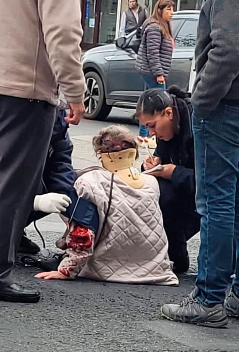 Como se puede ver en las imágenes, la mujer perdió bastante sangre tras golpearse la cabeza y le colocaron una venda antes del traslado al nosocomio. Según lo publicado por Zona Oeste Alta, la damnificada sufrió una conmoción tras el accidente y se encontraba desorientada.