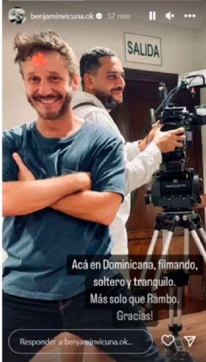 En el programa Socios del Espectáculo -que se emite por la pantalla de América- se dio a conocer la noticia de que Benjamín Vicuña estaría comenzando una relación con Milca Gili, una de las mejores amigas de la recientemente fallecida Silvina Luna. Uno de los conductores del ciclo, Adrián Pallares, aseguró: "Yo digo que tiene futuro. Se conocieron en el mes de noviembre del año pasado, se conocieron en un campo de polo, tienen amigos en común. En el mes de mayo, hubo una especie de algo, alguien dijo ‘¿estarán saliendo?'". Y agregó: "Negaron, pero uno de los dos, no vamos a decir quién, le cuenta a sus cercanos la verdad, que la pasó bien, ‘nos llevamos bien, tenemos muchas cosas en común’". Luego expresó: "El señor Benjamín Vicuña y la señora Milca, y esto es una bomba. Un comienzo de romance, ella fue ex de Luciano Pereyra, y ahora está teniendo una relación con Benjamín Vicuña". A través de sus historias de Instagram, el actor chileno compartió una foto donde se lo ve en pleno rodaje y escribió: "Acá en Dominicana, filmando, soltero y tranquilo. Más solo que Rambo. Gracias". De esta manera, el galán desmintió el romance.