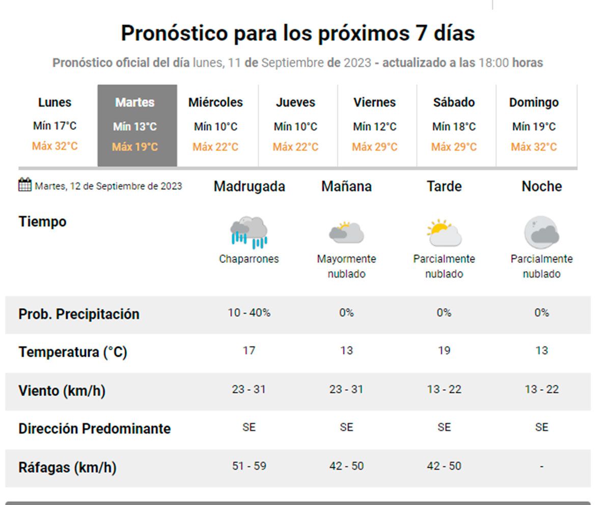Cabe destacar que durante las primeras horas de este lunes, el Servicio Meteorológico Nacional anunció la llegada del fenómeno denominado “Viento Zonda”, con ráfagas que alcanzaron los 69 km/h.