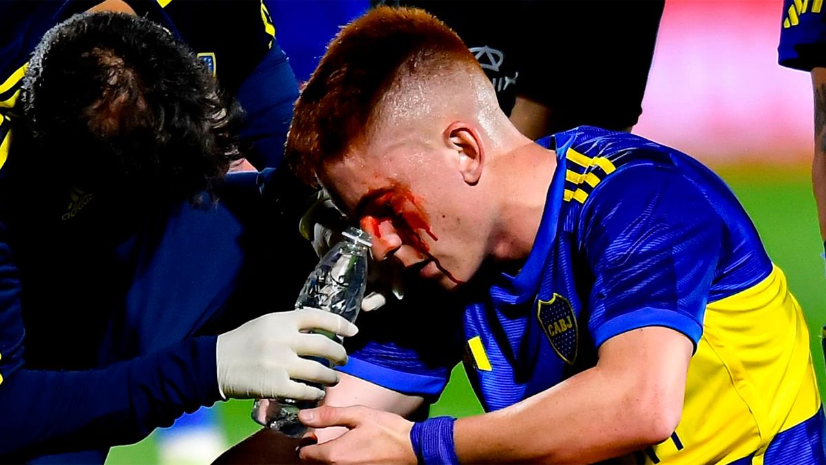 Valentín Barco regresó a Boca después de su desgarro en el psoas izquierdo pero su noche llegó a un abrupto final luego de sufrir un golpe por parte de Julián López que le produjo un profundo corte en su pómulo izquierdo.