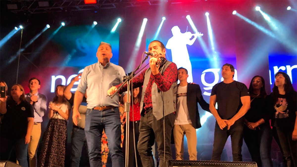 Néstor Garnica interpretó el ya clásico vals de La Banda e invitó al intendente Roger Nediani a subir al escenario. Juntos cantaron e hicieron emocionar al público.