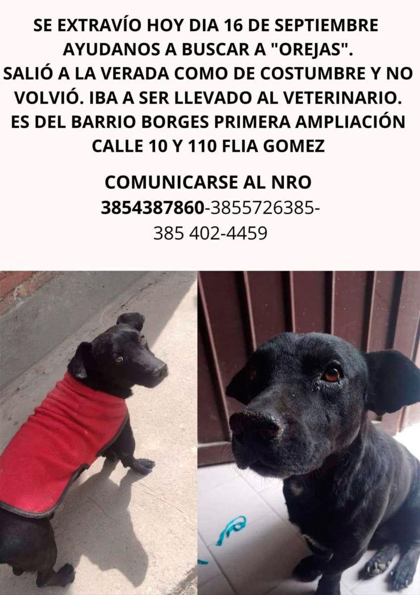 Un perro, que responde al nombre de "Orejas", se perdió el sábado 16 de septiembre en el barrio Borges, primera ampliación, calle 10 y 110.