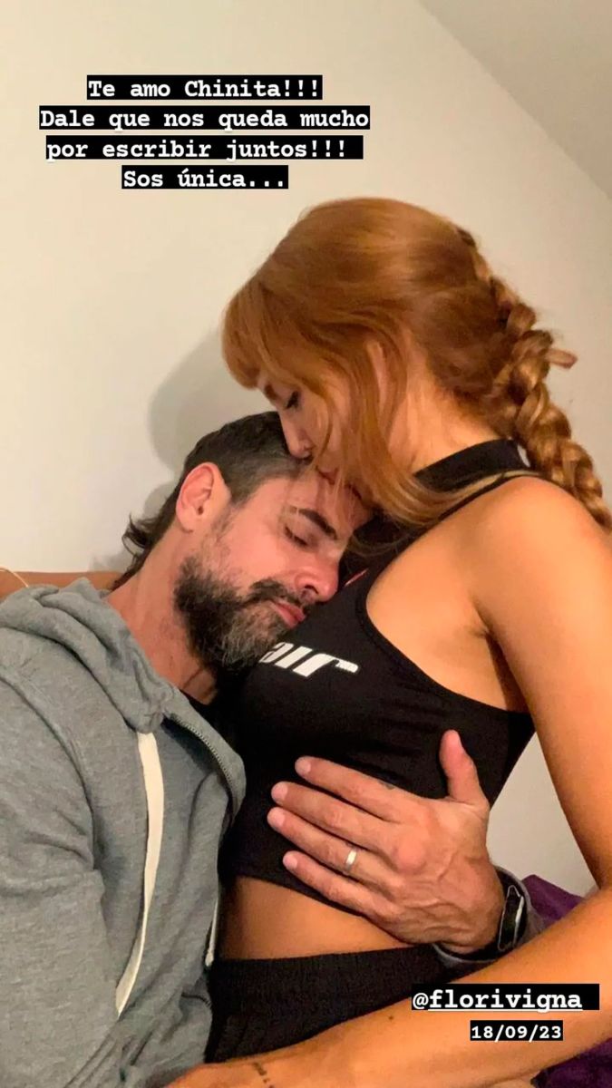 “¡Te amo, chinita! ¡Dale que nos queda por escribir mucho juntos! Sos única. 18/09/2023″, escribió el actor en su cuenta de Instagram. Estas palabras fueron acompañadas por una tierna foto donde se puede ver al galán apoyando su cabeza en el pecho de su novia.