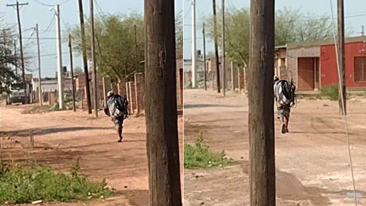 En la tarde del pasado lunes, vecinos de la zona norte de Añatuya captaron imágenes de un sujeto que en actitud sospechosa trasladaba un rollo importante de cables, del tipo utilizado en el alumbrado público.