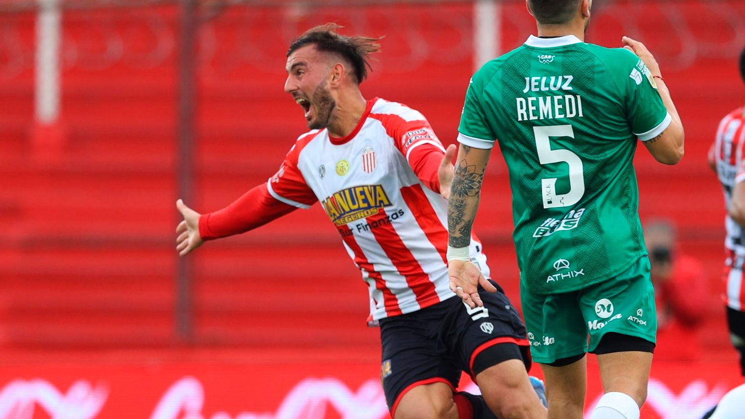 El empate del "Taladro" estuvo cerca por un error de Andrés Desábato en su intento de controlar la pelota tras el cabezazo de Emanuel Insúa. Su compañero Capraro lo salvó con el despeje sobre la línea.