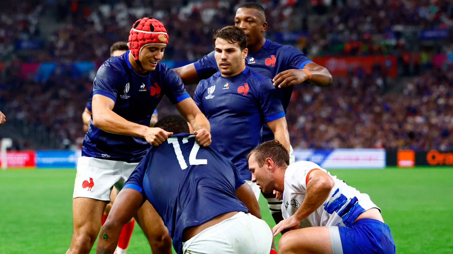 Francia goleó a Namibia por 96 a 0 en la fecha 3 de la Copa del Mundo, en lo que es la mayor goleada de los europeos en su historia Mundialista. El anfitrión consiguió su tercer triunfo consecutivo luego de llega de vencer a Nueva Zelanda y Uruguay. Además los Galos se ubican primeros en el Grupo A con 13 puntos, pero la preocupación de la noche es la salida de Antoine Dupont tras un golpe en su rostro.