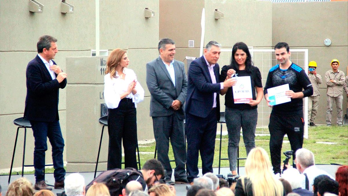 El intendente Roger Nediani acompañó al candidato a presidente de Unión por la Patria y actual Ministro de Economía, Sergio Massa, durante la entrega de las 240 viviendas del Programa Nacional "Casa Propia" en el barrio Mama Antula II de la ciudad de La Banda.