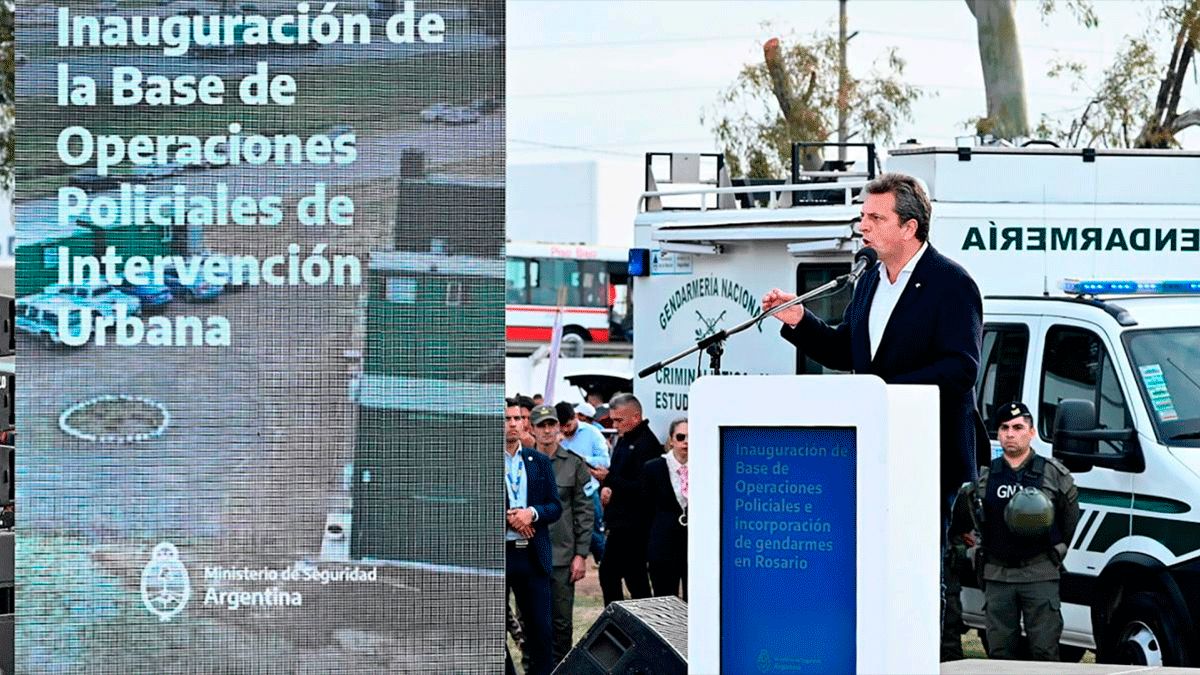 "Vamos a reforzar la presencia de las fuerzas federales en Rosario, y le digo al intendente que si soy Presidente voy a tomar como algo personal el devolverle la paz a Rosario", dijo Massa en su discurso. "Cuenten con mi compromiso para tener las inversiones que necesiten en logística y tecnología. Sé lo que significa para los efectivos de las fuerzas federales dejar sus hogares para trabajar contra el delito en otros destinos. Por eso les vamos a dar todas las herramientas que necesiten, agregó.