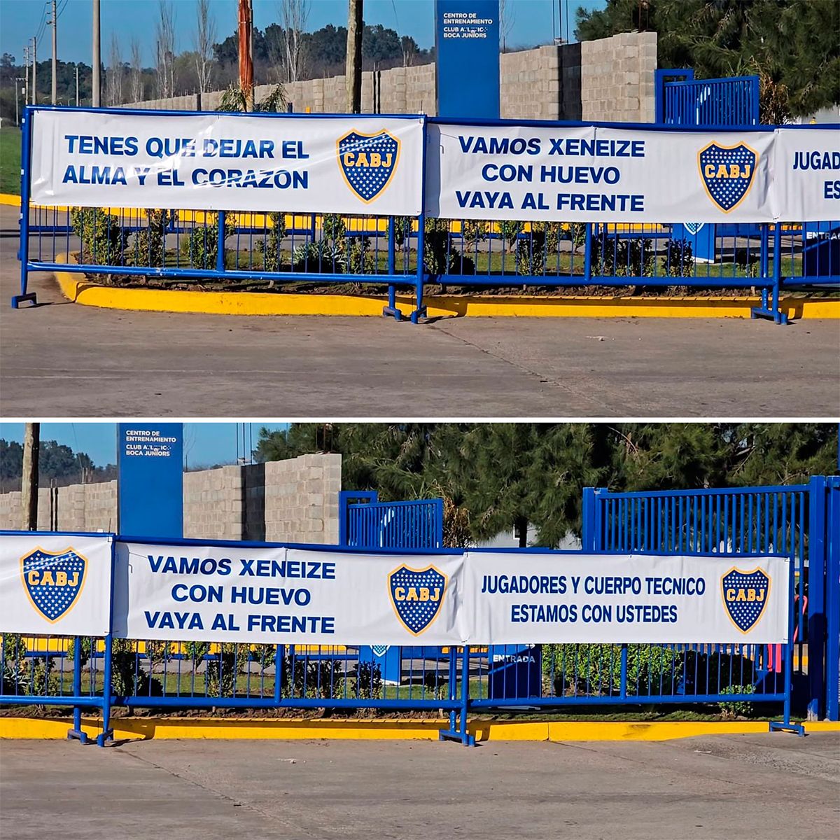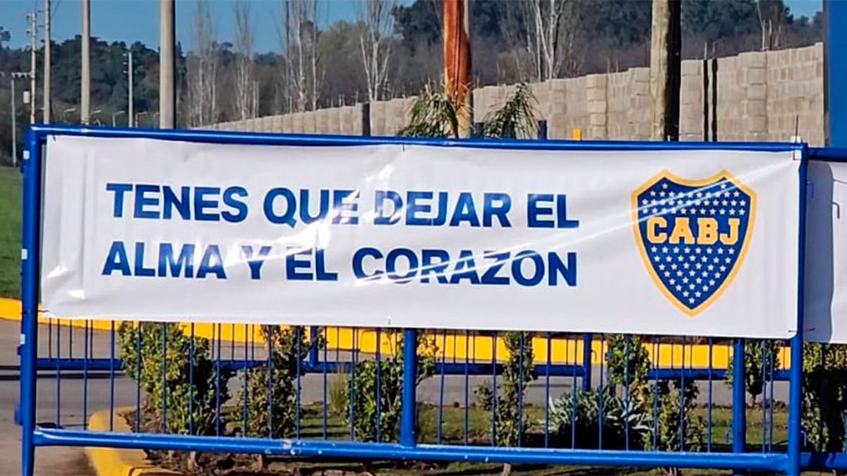 Los afiches fueron colgados por la misma institución para mostrarle su apoyo a los futbolistas y llevan leyendas propias de las canciones más reconocidas de la hinchada del conjunto azul y oro. "Vamos Xeneize con huevo vaya al frente" y "tenés que dejar el alma y el corazón", son algunas de las inscripciones que se vieron.