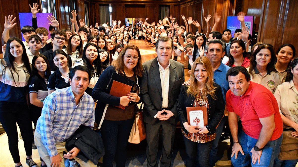 El contingente estudiantil fue recibido por el gobernador Gerardo Zamora en el Salón de Acuerdos "Juan Felipe Ibarra".