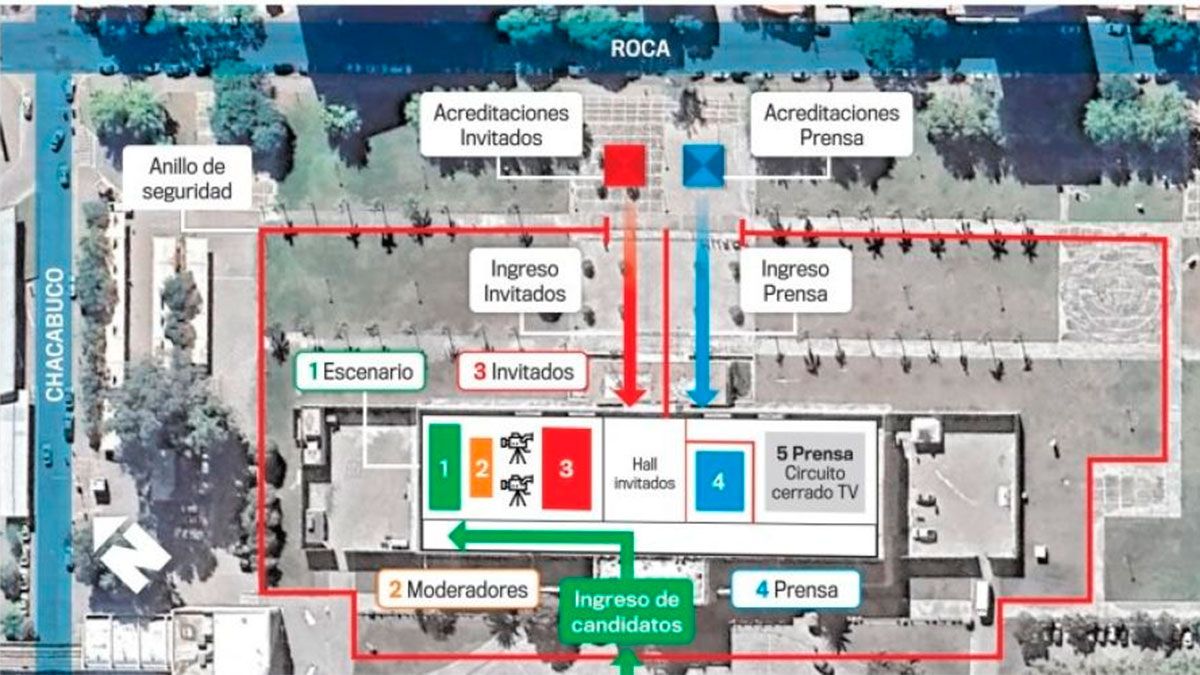 El primer debate presidencial que se llevará a cabo en el Fórum Centro de Convenciones de Santiago del Estero se realizará bajo un riguroso protocolo de seguridad. El acceso estará restringido únicamente a los candidatos, un selecto grupo de 200 invitados especiales y a la prensa acreditada.