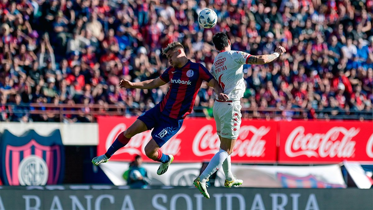 Después de esos cimbronazos, el partido se acomodó como se preveía, con Huracán con una leve ventaja en la posesión y San Lorenzo a la espera de la salida rápida por izquierda con Barrios y Malcom Braida.