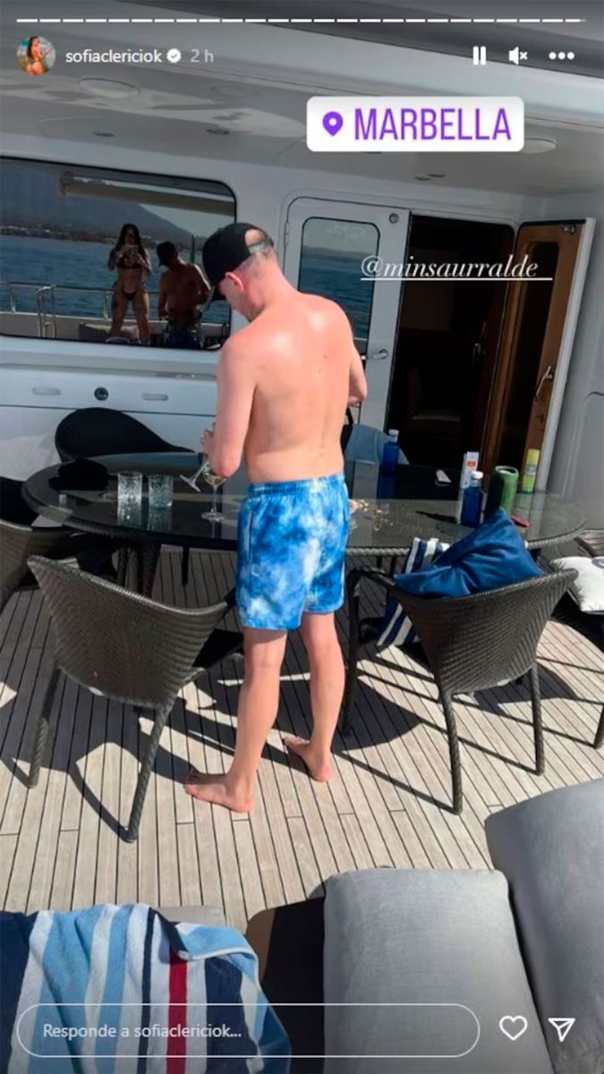 Un yate de lujo, copas de champagne, bolsos y un reloj de marca y el mar en el horizonte de Marbella son algunas de las fotografía que Sofía Clérici subió a su cuenta de Instagram para mostrar el viaje que estaría realizando con Martín Insaurralde, jefe de gabinete del gobernador Axel Kicillof, por el Mediterráneo. También sumó un video en el que ambos se muestran enamorados y sonríen y saludan a cámara.
