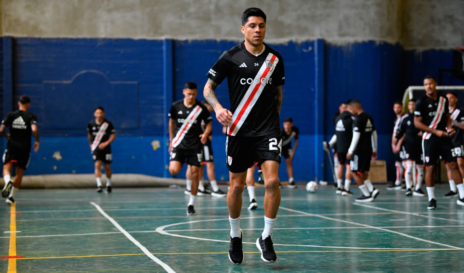 La casaca, inspirada en la mítica corbata que Labruna solía utilizar, se vio en el césped de La Bombonera cuando los arqueros, con Franco Armani a la cabeza, realizaron los primeros ejercicios de cara al partido más destacado del fútbol argentino.