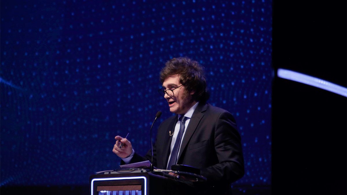 Así lo aseguró en el minuto de presentación el candidato a presidente por La Libertad Avanza en el Centro de Convenciones Fórum.