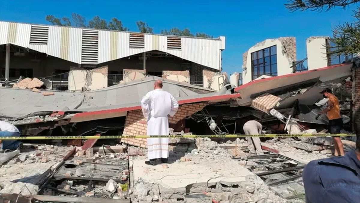 El momento exacto en el que colapsó la iglesia Santa Cruz, Ciudad Madero en Tamaulipas