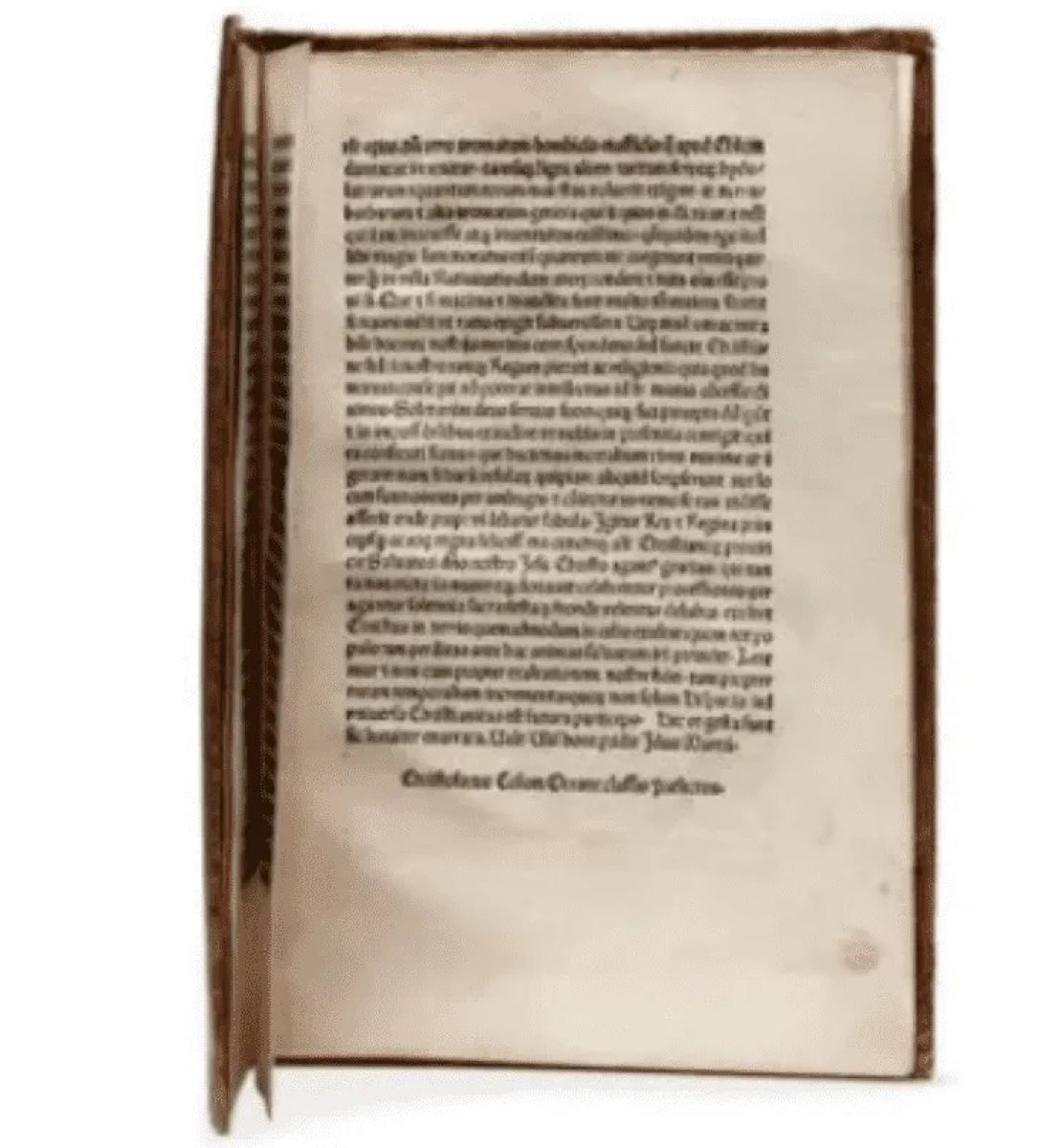 De aquella carta manuscrita, traducida al latín por Leandro di Cosco en los albores de la imprenta, se imprimieron unas pocas copias. Esta semana, la casa de subastas Christie’s subastará una de ellas, considerada "la más antigua de todas", que hasta ahora estaba en manos de un coleccionista suizo.