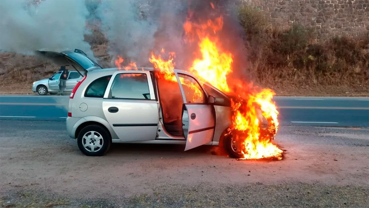 El hecho ocurrió a la altura de barrio Mirador del Lago de esa localidad del Valle de Punilla, cuando por circunstancias que se investigan, el Chevrolet Meriva gris en el que viajaban un hombre de 48 años junto a una mujer de 34, comenzó a incendiarse.
