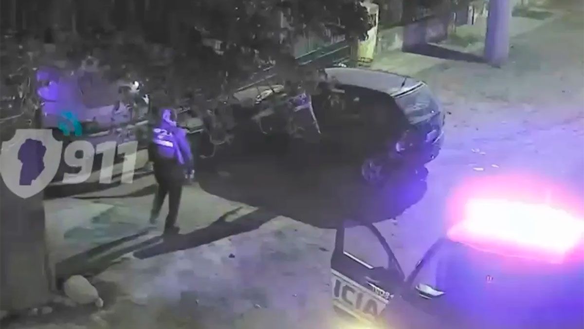 Los jóvenes fueron sorprendidos por una cámara de seguridad mientras manipulaban un auto en la vía pública.