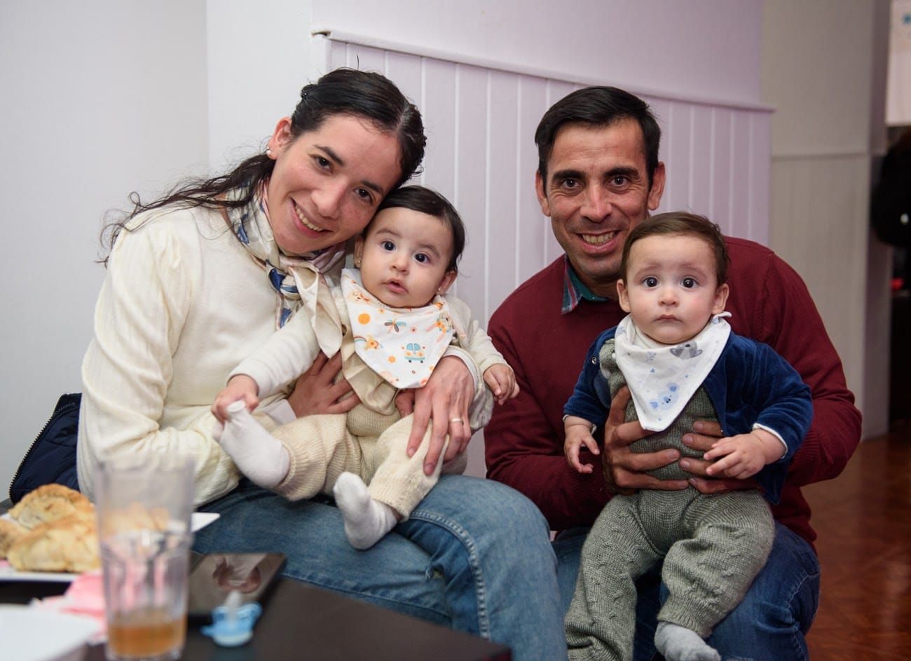 Los mellizos, Federica y Antonio, llegaron a las 38 semanas con aproximadamente 2.50 kg cada uno. Nacieron sin grandes complicaciones, y aunque permanecieron en el sanatorio por una semana para aprender sobre los cuidados necesarios, todo fue tranquilo y sano. La familia vive en Lomas del Golf, pero las necesidades de dos bebés llevaron a la necesidad de realizar ampliaciones en la casa.