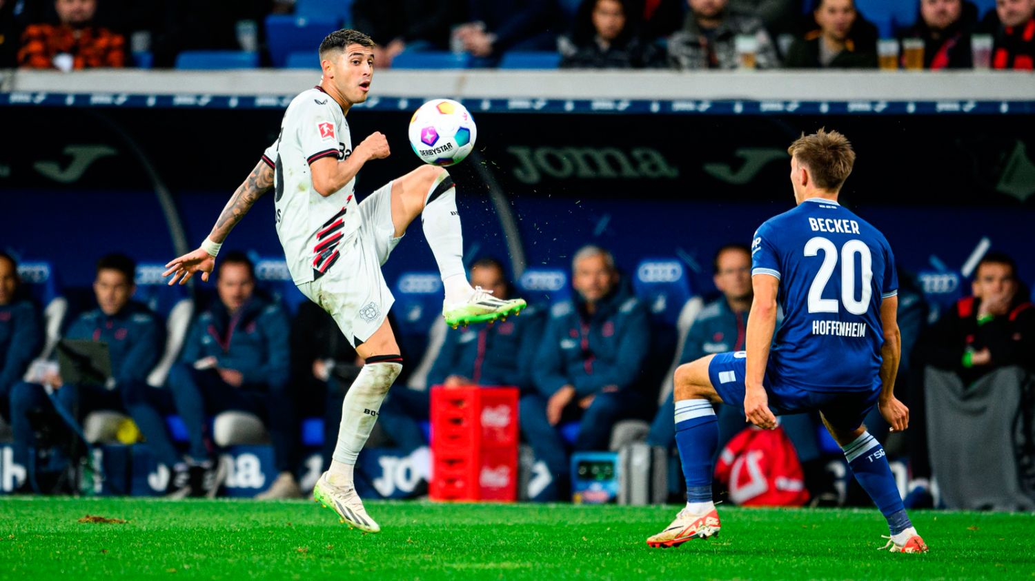 Bayer Leverkusen, con el campeón mundial Exequiel Palacios como titular, superó a Hoffenheim por 3 a 2 en la continuidad de la 10ª fecha de la Bundesliga y se afianzó como único líder del torneo.