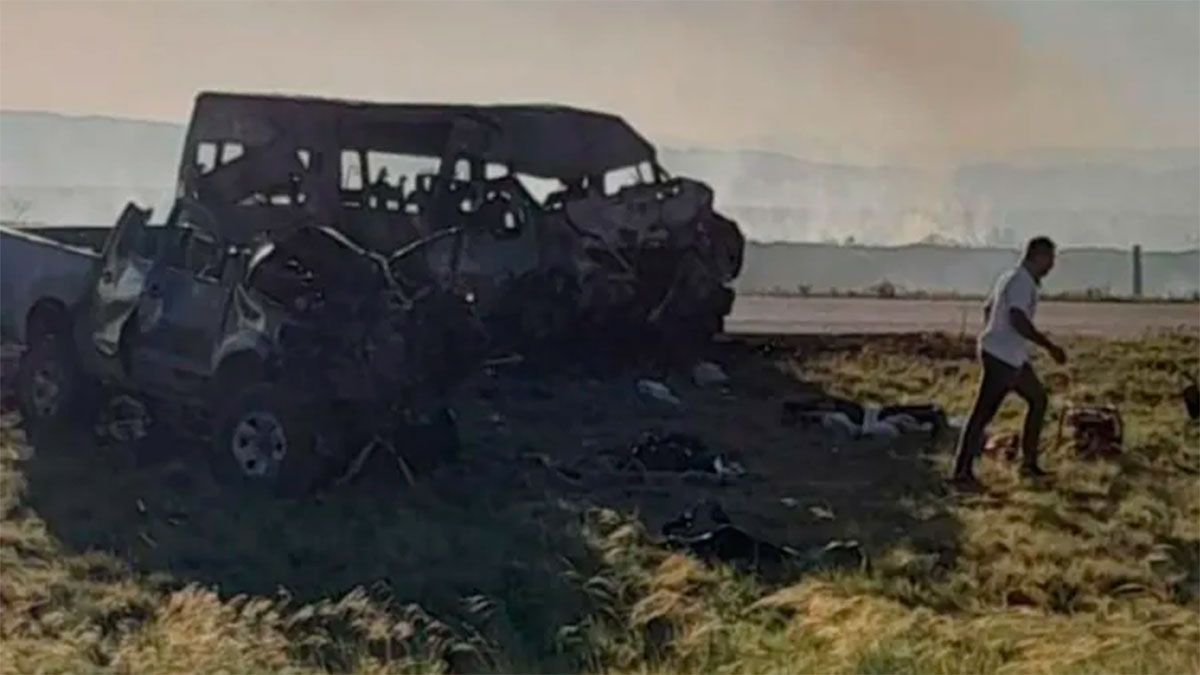 Como consecuencia del impacto, el vehículo que trasladaba a los deportistas se prendió fuego y originó un incendio forestal que obligó a trabajar a varias dotaciones de bomberos de la zona, según lo informado a Cadena 3 por el jefe de Bomberos de Río Tercero, Abel Domínguez.