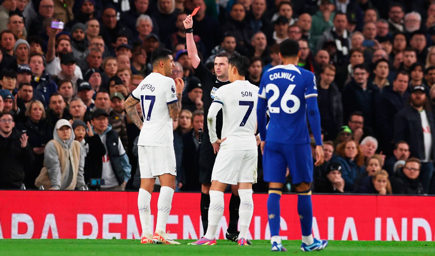 Cristian "Cuti" Romero vio la tarjeta roja en el clásico londinense entre Tottenham y Chelsea por un brutal planchazo a Enzo Fernández, que significó también penal en favor de los Blues en el duelo correspondiente a la fecha 11 de la Premier League.
