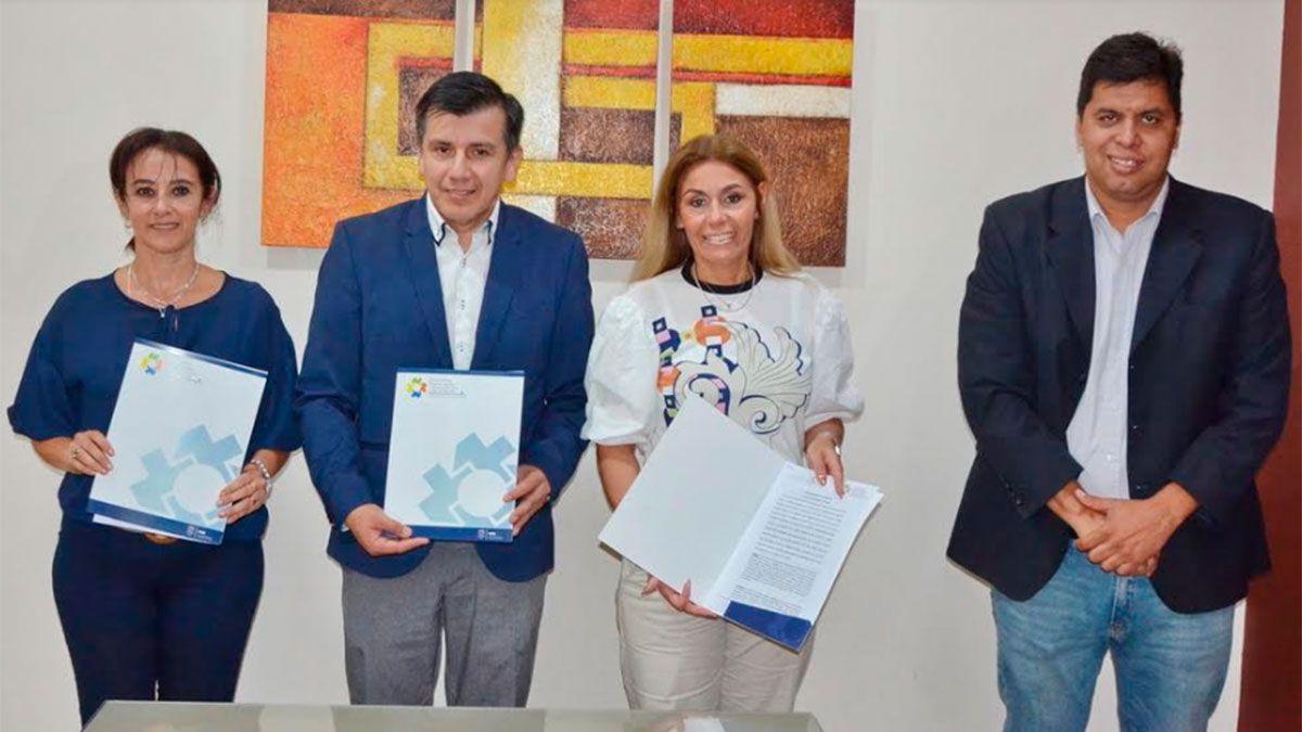 La rúbrica del acuerdo estuvo encabezada por el decano de Humanidades, Marcelino Ledesma y Cecilia Parisini, en representación del Colegio de Médicos; quienes estuvieron acompañados por la vicedecana, Sandra Moreira y el secretario de Extensión, Ulises Barbieri.
